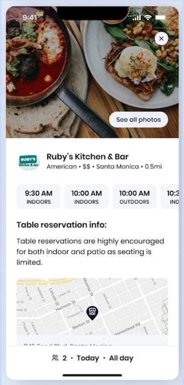 SpotOn Reserve enables direct, commission-free reservations in the GoTo Place mobile app with real-time availability and easy updates for diners. Reservations and waitlists are fully integrated with your POS, with table layouts and employee data automatically staying in sync. This means faster setup, less manual work, richer guest insights, and a lower-cost alternative to third-party reservation platforms—with no per-cover fees.